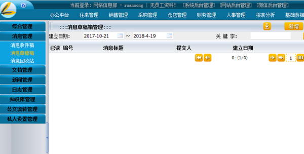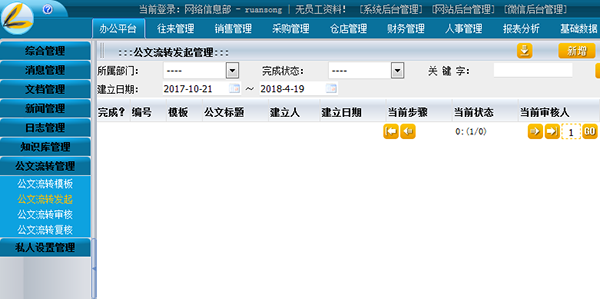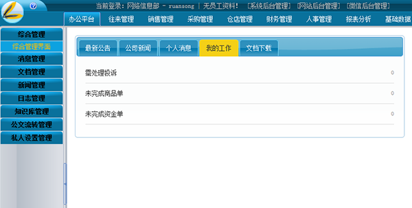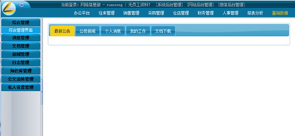 包括信息发布、内部新闻、通知公告、在线会议、常用连接、外出登记、BBS讨论组、图表管理八大功能模块。此模块是企业内部信息及员工交流的平台,实现了信息共享、提高了工作效率。